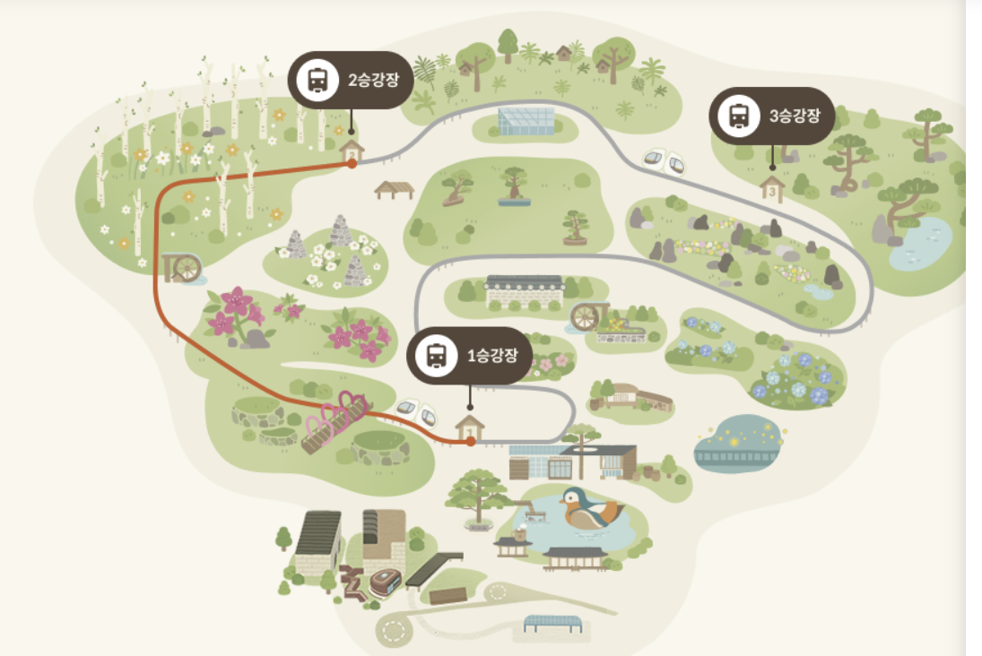 화담숲은 언덕과 숲길이 많기 때문에 ‘모노레일’이 매우 유용해요. 특히 유모차나 장시간 걷기 어려운 분들에게 추천!